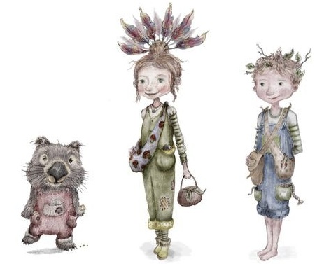 The three central characters as illustrated by Louise Prentice
